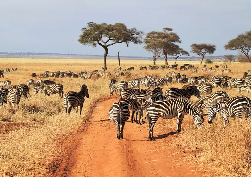 Tarangire’s climate is typically hot and dry, with a short rainy season from November to December and a long rainy season from March to May. The best time to visit is during the dry season, from June to October, when wildlife concentrates around the Tarangire River, making it easier to spot animals.